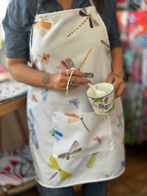 Delantal estampado exclusivo Anilove sobre tela tropical mecanica