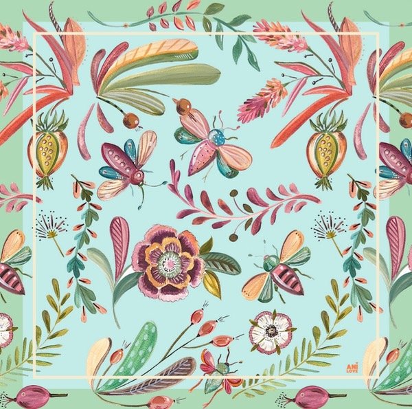 los diseños son exclusivos pintados a mano o digitalmente e impresos en tela.