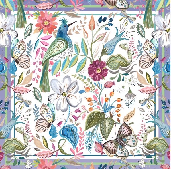 los diseños son exclusivos pintados a mano o digitalmente e impresos en tela.