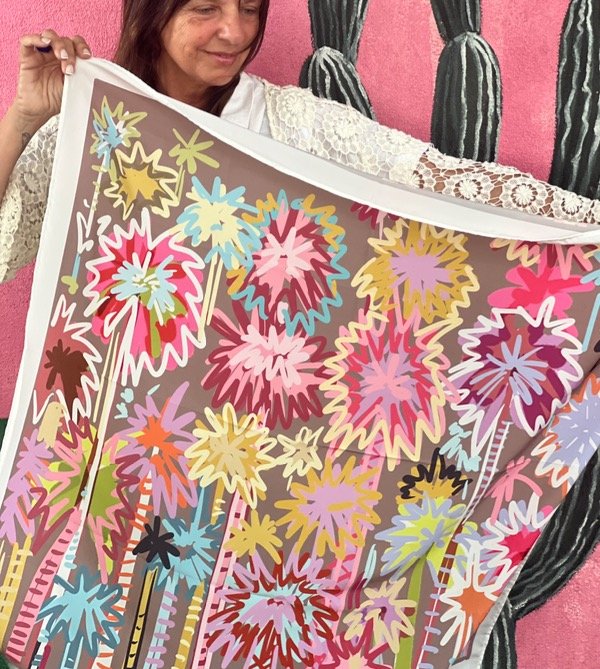los diseños son exclusivos pintados a mano o digitalmente e impresos en tela.